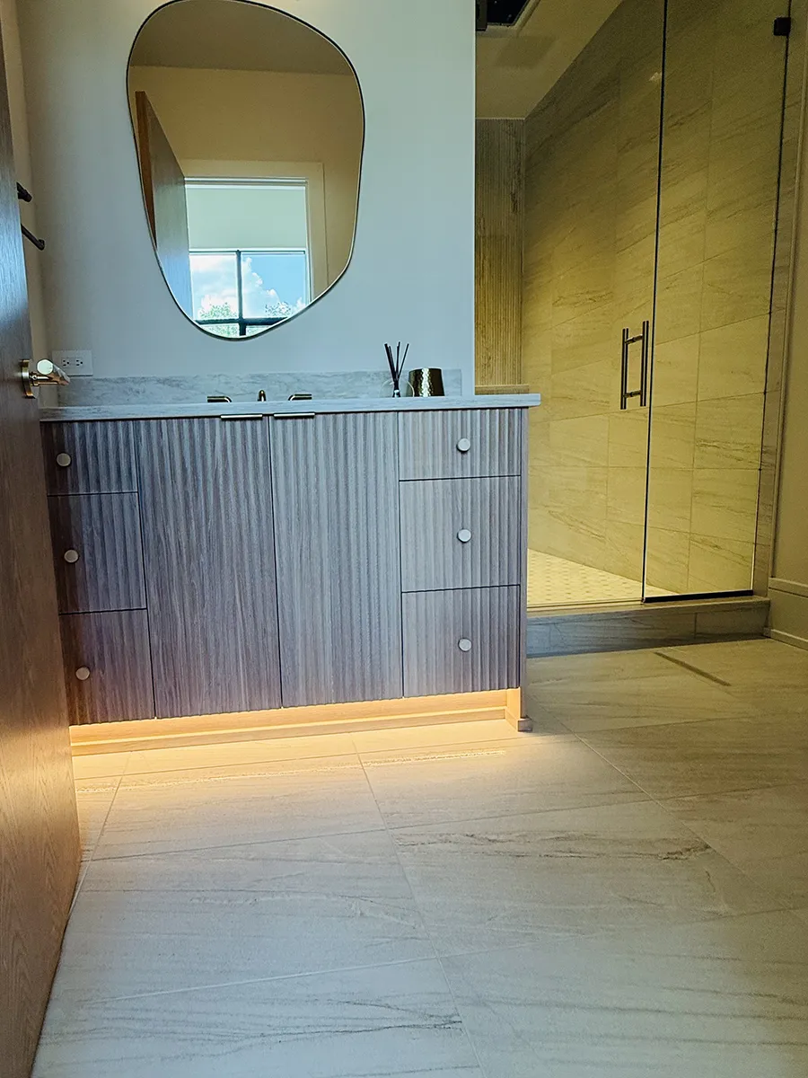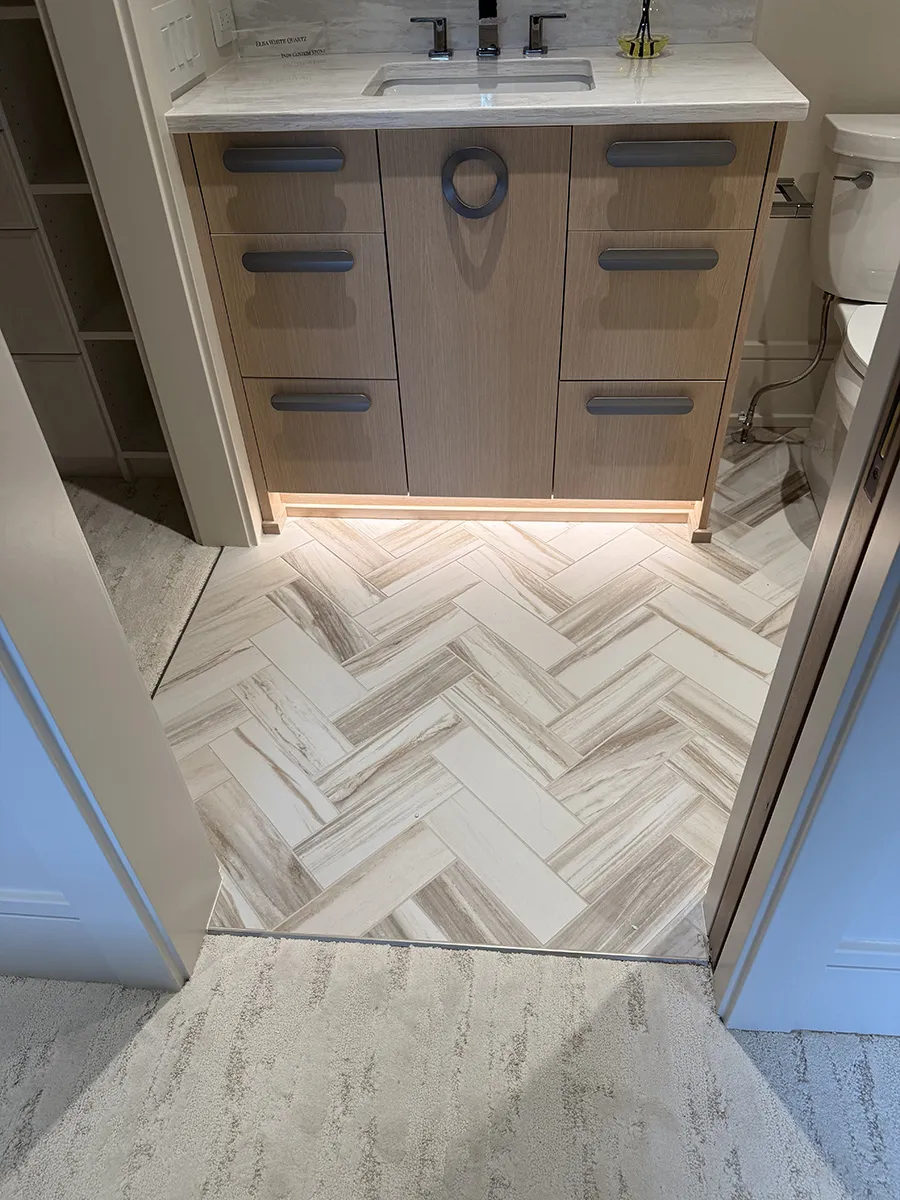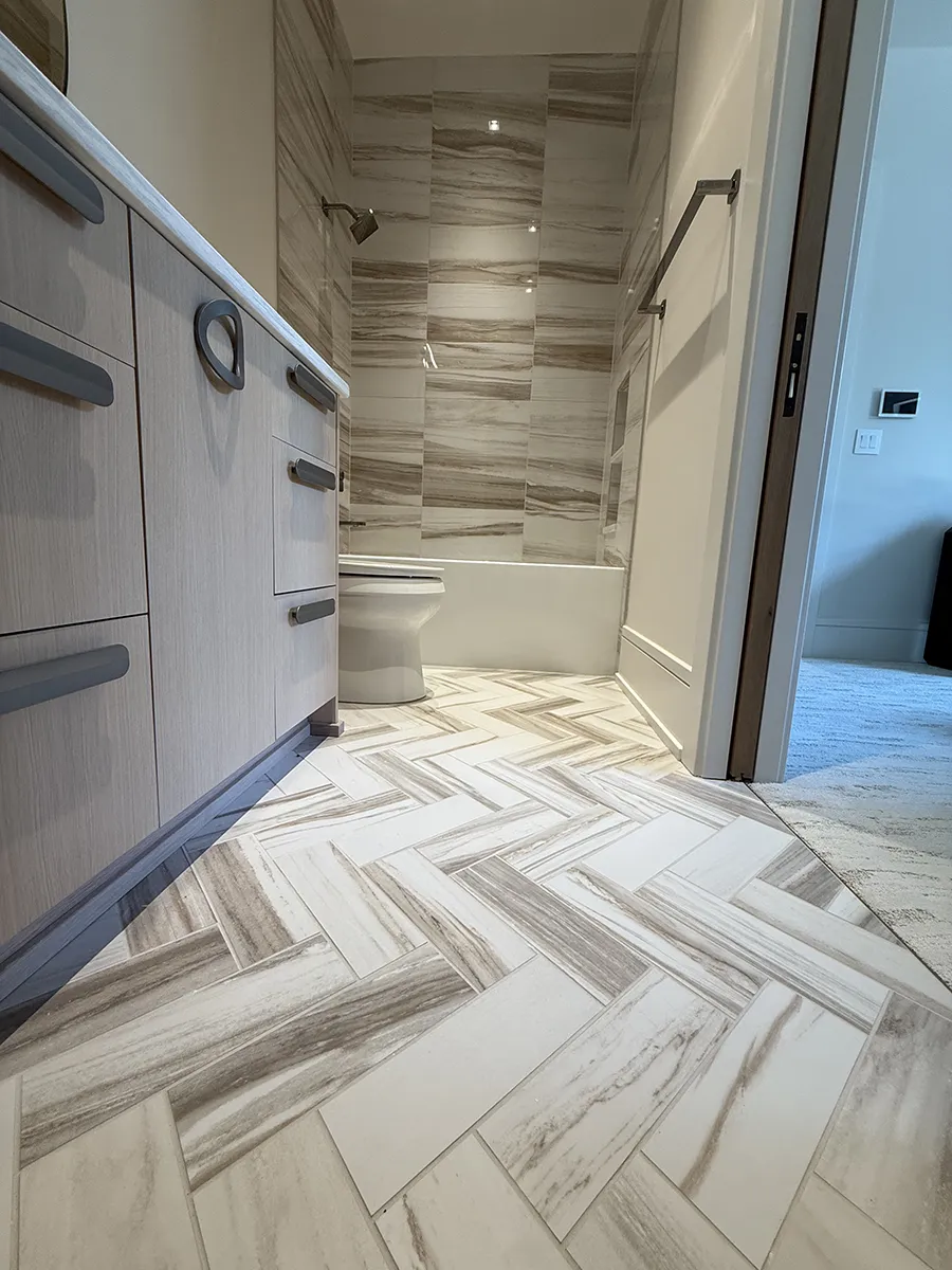 Our team supplied and installed all flooring and tile materials featured in the 2025 Dream Home. Every product was thoughtfully chosen to reflect the home’s modern architecture and refined design.